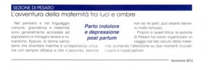 All’interno del notiziario, a pag. 21, nella Sezione di Pesaro si trova l’articolo intotolato “L’Avventurra della maternità tra luci e ombre; parto indolore e depressione post-partum” il cui articolo potete leggere nelle immagini allegate. Il convegno si è tenuto il 18 aprile 2012 presso la Biblioteca S. Giovanni di Pesaro.
