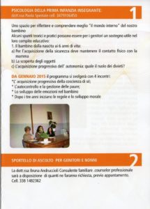 Un’altra attività è quella della Dott.ssa Bruna Andruccioli, Consulente Familiare, con uno sportello d’ascolto per genitori e nonni.
